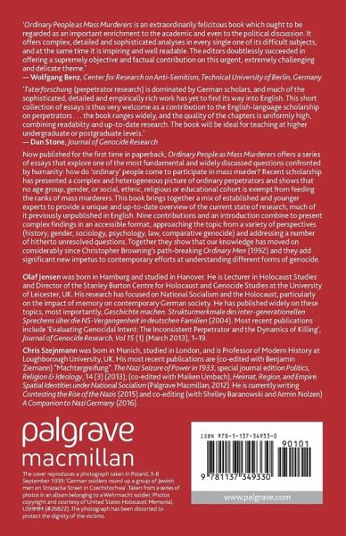 Now published for the first time in paperback, Ordinary People as Mass Murderers offers a series of essays that explore one of the most fundamental and widely-discussed questions confronted by humanity: how do 'ordinary' people come to participate in mass murder? Recent scholarship has presented a complex and heterogeneous picture of ordinary perpetrators and shows that no age group, gender, or social, ethnic, religious or educational cohort is exempt from feeding the ranks of mass murderers. This book brings together a mix of established and younger experts to provide a unique and up-to-date overview of the current state of research, much of it previously unpublished in English. Nine contributions and an introduction combine to present complex findings in an accessible format, approaching the topic from a variety of perspectives (history, gender, sociology, psychology, law, comparative genocide) and addressing a number of hitherto unresolved questions. Together they show that our knowledge has moved on considerably since Christopher Browning's path-breaking Ordinary Men (1992) and they add significant new impetus to contemporary efforts at understanding different forms of genocide.