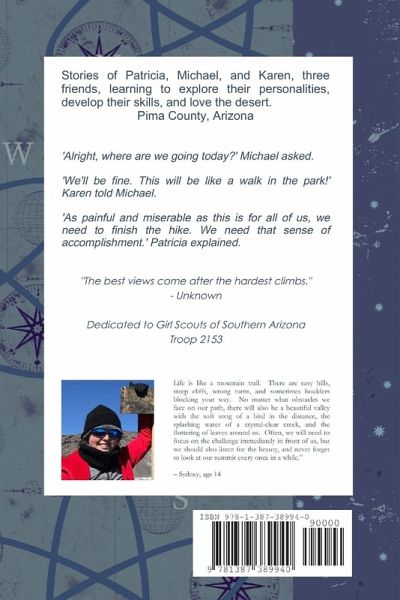 This book follows three friends and their adventures around the trails of Pima County. On their journey, they come upon many obstacles which they must find a way around. A book that can be read as a story cover to cover or as a hiking guide, is perfect for all ages and reading levels. This book takes you on a journey through 25 of Tucson's most well-known trails, and teaches readers not only about hiking, but about perseverance.