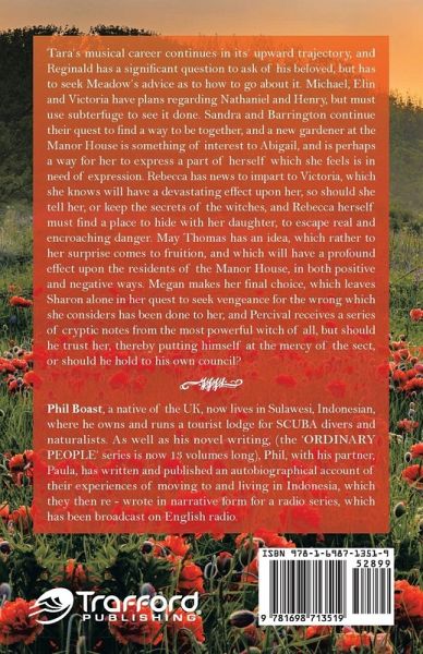 Tara's musical career continues in its' upward trajectory, and Reginald has a significant question to ask of his beloved, but has to seek Meadow's advice as to how to go about it. Michael, Elin and Victoria have plans regarding Nathaniel and Henry, but must use subterfuge to see it done. Sandra and Barrington continue their quest to find a way to be together, and a new gardener at the Manor House is something of interest to Abigail, and is perhaps a way for her to express a part of herself which she feels is in need of expression. Rebecca has news to impart to Victoria, which she knows will have a devastating effect upon her, so should she tell her, or keep the secrets of the witches, and Rebecca herself must find a place to hide with her daughter, to escape real and encroaching danger. May Thomas has an idea, which rather to her surprise comes to fruition, and which will have a profound effect upon the residents of the Manor House, in both positive and negative ways. Megan makes her final choice, which leaves Sharon alone in her quest to seek vengeance for the wrong which she considers has been done to her, and Percival receives a series of cryptic notes from the most powerful witch of all, but should he trust her, thereby putting himself at the mercy of the sect, or should he hold to his own council?