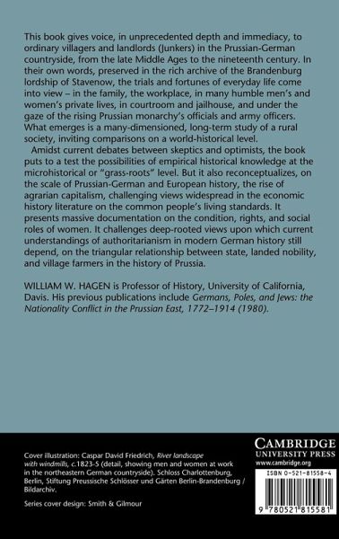 This book gives voice, in unprecedented depth and immediacy, to ordinary villagers and landlords (Junkers) in the Prussian-German countryside, from the late Middle Ages to the nineteenth century. The trials and fortunes of everyday life come into view - in the family, the workplace, in the private lives of both men and women, in courtroom and jailhouse, and under the gaze of the rising Prussian monarchy's officials and army officers. What emerges is a many-dimensioned, long-term study of a rural society, inviting comparisons on a world-historical level. The book also puts to a new test the possibilities of empirical historical knowledge at the microhistorical or 'grass-roots' level. But it also reconceptualises, on the scale of Prussian-German and European history, the rise of agrarian capitalism, challenging views widespread in the economic history literature on the common people's working standards, and including massive new documentation on women's condition, rights, and social roles.