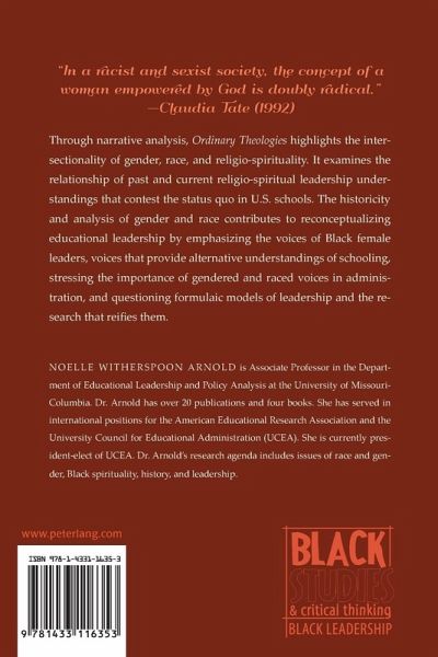 Through narrative analysis, Ordinary Theologies highlights the intersectionality of gender, race, and religio-spirituality. It examines the relationship of past and current religio-spiritual leadership understandings that contest the status quo in U.S. schools. The historicity and analysis of gender and race contributes to reconceptualizing educational and leadership by emphasizing the voices of Black female leaders, voices that provide alternative understandings of schooling, stressing the importance of gendered and raced voices in administration, and questioning formulaic models of leadership and the research that reifies them.