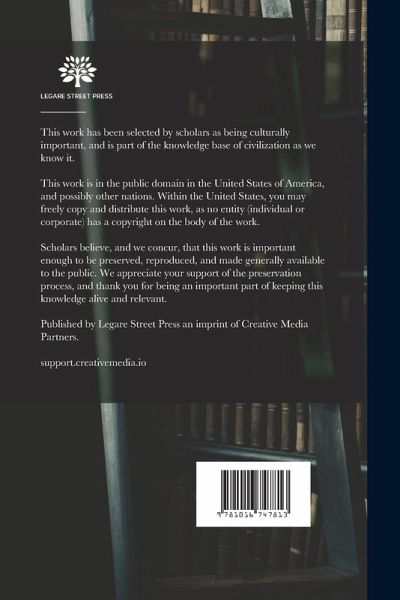 This work has been selected by scholars as being culturally important, and is part of the knowledge base of civilization as we know it. This work is in the "public domain in the United States of America, and possibly other nations. Within the United States, you may freely copy and distribute this work, as no entity (individual or corporate) has a copyright on the body of the work. Scholars believe, and we concur, that this work is important enough to be preserved, reproduced, and made generally available to the public. We appreciate your support of the preservation process, and thank you for…mehr