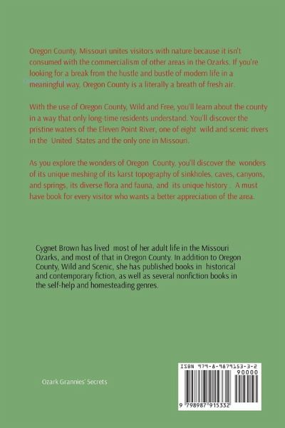 Oregon County, Missouri unites visitors with nature because it isn't consumed with the commercialism of other parts of the Ozarks. Suppose you're looking to get away from the hustle and bustle of modern life in a meaningful way. In that case, Oregon County provides a rare opportunity unavailable in other parts of the country. In Oregon County, Wild and Scenic, you'll learn about the county in a way that only long-time residents are otherwise privy to. It is the home of one of only eight wild and scenic riverways in the United States. With this book in hand, visitors have access a greater understanding of the unique meshing of the geological karst topography of sinkholes, caves, canyons, and springs, diverse flora and fauna, and the unique history of this part of the Ozarks. The book is a must-have for every visitor to the county who wants a deeper appreciation of the area.