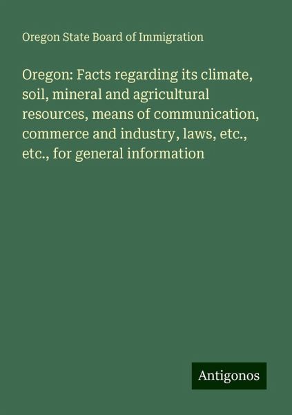 Oregon: Facts regarding its climate, soil, mineral and agricultural resources, means of communication, commerce and industry, laws, etc., etc., for general information - Immigration, Oregon State Board Of