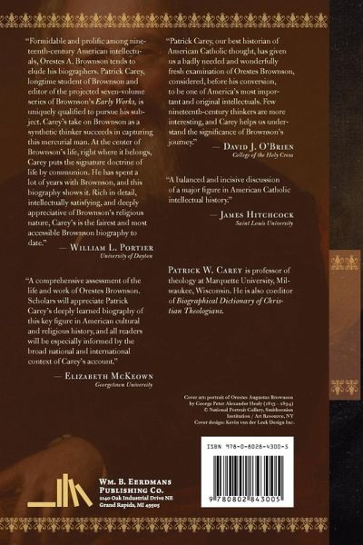 Orestes Augustus Brownson (1803- 1876) was a philosopher, essayist, and minister whose broad-ranging ideas both reflected and influenced the social and religious mores of his day. This superb biography by Patrick Carey provides a thorough, incisive account of Brownson's shifting intellectual and religious life within the context of American cultural history. Based on a close reading of Brownson's diary notebooks, letters, essays, and books, this biography chronicles the course of Brownson's eventful life, particularly his restless search for a balance between freedom and communion in his relations with God, nature, and the human community. Yet Carey's work is more than an excellent account of one man's development; it also portrays the face of an important period in American religious history. What is more, 200 years after Brownson's birth, America is marked by the same pressing social and religious issues that he himself addressed: religious pluralism, changing religious identifications, culture wars, military conflicts, and challenges to national peace and security. Carey's book shows how Brownson's values and ideas transcend his own time period and resonate helpfully with our own.
