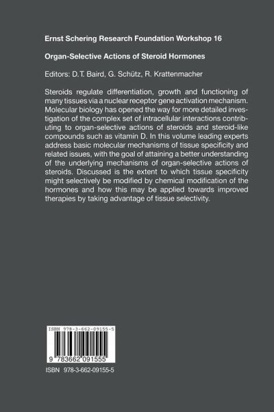 Steroids regulate differentiation, growth and functioning of many tissues via a nuclear receptor gene activation mechanism. Molecular biology has opened the way for more detailed investigation of the complex set of intracellular interactions contributing to organ-selective actions of steroids and steroid-like compounds such as vitamin D. In this volume leading experts address basic molecular mechanisms of tissue specificity and related issue, with the goal of attaining a better understanding of the underlying mechanisms of organ selective actions of steroids. Discussed is the extent to which tissue specificity might selectively be modified by chemical modification of the hormones and how this may be applied towards improved therapies by taking advantage of tissue selectivity.