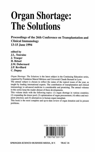 The annual subject is chosen to reflect the status of the topical issues of the year, as taught by leading international experts. The contribution of transplantation and clinical immunology to advanced medicine is considerable and promising. The annual volumes in this series keep the reader abreast of these developments.