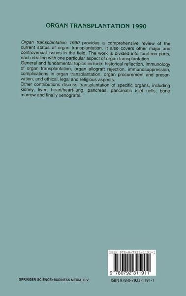 One: Historical Reflections.- 1. Reflections on the development of organ transplantation.- Two: Immunology of Organ Transplantation.- 2. Cellular and molecular mechanisms of allograft rejection.- 3. What does the alloreactive T cell see?.- 4. HLA matching and organ transplantation.- 5. An effective strategy for transplantation of highly sensitized patients.- 6. Rapid lymphocyte crossmatching for renal transplantation.- Three: Organ Allograft Rejection.- 7. Fifteen-year experience with fine needle aspiration biopsies at the University of Helsinki.- 8. Study of antibody specificity in highly sensitized patients using human monoclonal antibody technology.- 9. Idiotypic-Antiidiotypic antibody interaction and renal transplant survival.- Four: Immunosuppression.- 10. Transplantation and blood transfusion in 1990.- 11. Quadruple-drug immunosuppressive induction treatments for immunological high-risk patients in cadaveric renal transplantation using poly-and monoclonal antibodies.- 12. Sequential combination immunotherapy for cadaveric renal transplantation: OKT3 versus rabbit ATG induction.- 13. Multi-organ transplant experience with OKT3 and strategies for use at the University of Cincinnati Medical Center.- 14. Cyclosporine withdrawal in renal transplant recipients maintained on azathioprine, prednisone and cyclosporine.- 15. Early experience with FK 506 in liver transplantation.- 16. Deoxyspergualin. A novel immunosuppressant: experimental and clinical studies.- 17. Preliminary results with FK 506 in pancreas grafting in a nonhuman primate model.- 18. The effect of DST on graft outcome - the Turkish experience.- 19. Induction of specific unresponsiveness (tolerance) to experimental and clinical allografts using polyclonal antilymphocyte serum and donor-specific bone marrow.- 20. Comparison of cyclosporine assays using radioimmunoassay, fluorescent polarization immunoassay and high-performance liquid chromatography.- Five: Renal Transplantation.- 21. Long-term outcome in renal transplantation.- 22. Ten-year experience with 500 renal transplants.- 23. Long-term results in recipients of cadaveric renal allografts under cyclosporine therapy.- 24. Transplantation of single and double kidneys from pediatric donors.- 25. ABO-incompatible living related donor transplantation.- 26. The use of single pediatric cadaver kidneys for transplantation into adult recipients.- 27. Living unrelated donor renal transplantation.- 28. Renal transplantation in Tunisia - a three-year experience.- 29. Renal transplantation in children.- 30. Kidney donors - long-term follow up.- 31. Current techniques for permanent vascular access surgery - experience with 930 procedures.- 32. Results of 319 consecutive renal transplants from living related and living unrelated donors in Iran.- Six: Liver Transplantation.- 33. Liver transplantation: current status.- 34. An overview of liver transplantation therapy for children.- 35. Current anesthetic management in clinical liver transplantation.- 36. Risk factors in adult liver transplant recipients.- 37. The concept of reduced-size liver transplantation, including split-liver and living related liver transplantation.- 38. Immunological factors contributing to outcome in liver transplantation.- 39. Transplantation for hepatobiliary malignancies.- 40. The diagnosis and management of massive blood loss during liver transplantation.- 41. Early clinical experience with cluster resection and transplantation for right upper quadrant abdominal malignancy.- Seven: Heart/Heart-Lung Transplants.- 42. Lung transplantation: current techniques and outcomes.- 43. Heart-lung transplantation at the University of Minnesota.- 44. Specificity and sensitivity of the cytoimmunological monitoring (CIM): differentiation between cardiac rejection, viral, bacterial, or fungal infection.- Eight: Pancreas Transplantation.- 45. International Pancreas Transplantation Registry report.- 46. Techniques and experience of pancreatic transplantation wit...