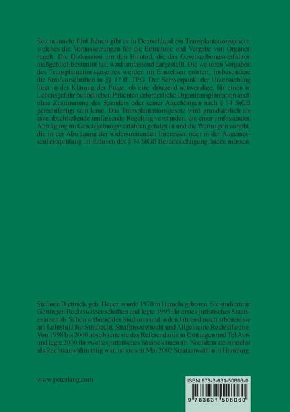 17 ff. TPG. Der Schwerpunkt der Untersuchung liegt in der Klärung der Frage, ob eine dringend notwendige, für einen in Lebensgefahr befindlichen Patienten erforderliche Organtransplantation auch ohne Zustimmung des Spenders oder seiner Angehörigen nach