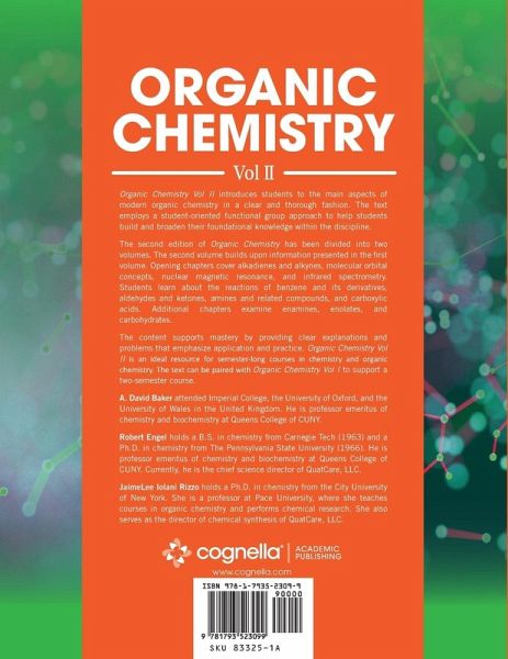 Organic Chemistry Vol II introduces students to the main aspects of modern organic chemistry in a clear and thorough fashion. The text employs a student-oriented functional group approach to help students build and broaden their foundational knowledge within the discipline. The second edition of Organic Chemistry has been divided into two volumes. The second volume builds upon information presented in the first volume. Opening chapters cover alkadienes and alkynes, molecular orbital concepts, nuclear magnetic resonance, and infrared spectrometry. Students learn about the reactions of benzene and its derivatives, aldehydes and ketones, amines and related compounds, and carboxylic acids. Additional chapters examine enamines, enolates, and carbohydrates. The content supports mastery by providing clear explanations and problems that emphasize application and practice. Organic Chemistry Vol II is an ideal resource for semester-long courses in chemistry and organic chemistry. The text can be paired with Organic Chemistry Vol I to support a two-semester course.