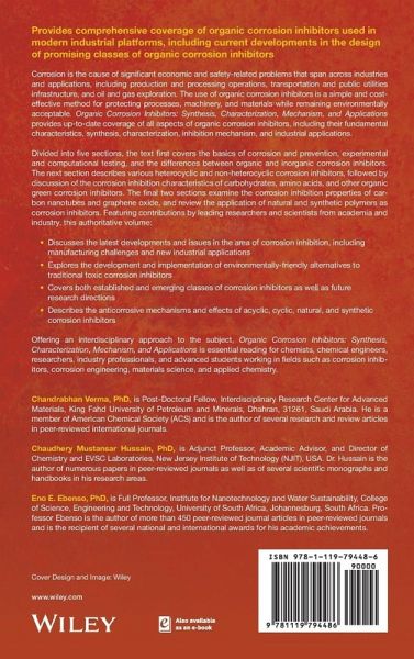 Offering an interdisciplinary approach to the subject, Organic Corrosion Inhibitors: Synthesis, Characterization, Mechanism, and Applications is essential reading for chemists, chemical engineers, researchers, industry professionals, and advanced students working in fields such as corrosion inhibitors, corrosion engineering, materials science, and applied chemistry.