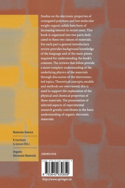 Studies on the electronic properties of conjugated polymers and low molecular weight organic solids have been of increasing interest in recent years. This book is organized into two parts dedicated to these two classes of materials. For each part a general introductory review provides background knowledge of the language and of the main points required for understanding the book's contents. The reviews that follow provide a more complete understanding of the underlying physics of the materials through discussion of the interconnected topics. Theoretical concepts, models and methods are overviewed; this is used to support the explanation of the physical and chemical properties of these materials. The presentation of selected aspects of experimental research greatly contributes to the basic understanding of organic electronic materials.