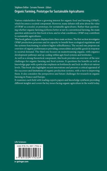 Preface.- 1. Introduction: Organic food and Farming, Prototype for Sustainable Agriculture.- PART 1 - SYSTEM'S FUNCTIONING TO IMPROVE SELF-SUFFICIENCY.- 1.1 Organic Landcare and Fertility.- 2. Soil phosphorus (P) management in organic cropping systems: from current practices to avenues for a more efficient use of P resource.- 3. Intercropping - applying ecological principles for improved nitrogen use efficiency in organic farming systems.- 1.2 Crop Protection in Organic Farming.- 4. Regulatory framework for plant protection in organic farming.- 5. Conservation biocontrol: Principles and implementation in organic farming.- 6. Contribution of agroecology to plant protection in Organic Farming: Relevance and Limits.- 7. Building apple ideotypes adapted to organic and low-input, competitive systems.- 1.3 Livestock Management and System Design.- 8. Alternatives to chemical antiparasitic drugs in livestock in organic farming.- 9. Animal healthcare strategies in organic and conventional farming.- 10. Technical and economic performances in organic sheep-for-meat farms: observations on sheep-rearing networks and experimental farms.- 11. Experiencing organic mixed-crop dairy systems: a step by step assessment and redesign centred on a long-term experiment.- PART 2 - ORGANIC PERFORMANCES: BETWEEN SOCIETAL EXPECTATIONS AND SCIENTIFIC EVIDENCE.- 2.1 Environmental Issues.- 12. Using Life Cycle Analysis to compare the environmental performance of organic and conventional apple orchards.- 13. The potential of organic agriculture to mitigate the impact of agriculture on global warming - a review.- 2.2 Animal Welfare.- 14. The respect of the five freedoms of farm animal in a context of environmental and health constraints: how much organic farming may play a role? A review.- 15. Can organic animal farmers do animal husbandry? Breaking with "animal production", a major issue for organic farming.- 2.3 Quality of OrganicProducts.- 16. Food quality and possible positive health effect of organic products.- 17. Quality of organic lamb.- 18. Is organic farming unsustainable? Analysis of the debate about the conventionalisation of the organic label.- PART 3 - DEVELOPMENT DYNAMIC AND UP-SCALING (FOOD SYSTEM AND TERRITORY).- 3.1 New Frameworks for New Valuation Criteria.- 19. Transforming Recognition of the Social, Ecological and Economic Goods and Services Derived from Organic Agriculture in the Canadian Context.- 20. Seed sector and breeding methods: challenges for organic varieties.- 21. Seed for Organic Agriculture: the Development of the Participatory Plant Breeding and the Farmers' Networks in France.- 3.2 Transition Pathways in Agri-Food Systems: Farming Practices and Food Networks.- 22. Enabling the Ecological Redesign of Organic and Conventional Agriculture: A Social Ecology and Psychosocial Perspective - Position Paper.- 23. Transitions towards organic farming at the farm and at the local scales: the role of innovative production and organisational modes and networks.- 24. Contributing to the sustainability of agro-food systems: Potentials and pitfalls for organic farming.- 25. Multi-scale integrated assessment of regional conversion to Organic Farming.