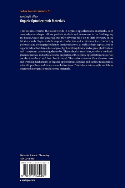 This volume reviews the latest trends in organic optoelectronic materials. Each comprehensive chapter allows graduate students and newcomers to the field to grasp the basics, whilst also ensuring that they have the most up-to-date overview of the latest research. Topics include: organic conductors and semiconductors; conducting polymers and conjugated polymer semiconductors, as well as their applications in organic field-effect-transistors; organic light-emitting diodes; and organic photovoltaics and transparent conducting electrodes. The molecular structures, synthesis methods, physicochemical and optoelectronic properties of the organic optoelectronic materials are also introduced and described in detail. The authors also elucidate the structures and working mechanisms of organic optoelectronic devices and outline fundamental scientific problems and future research directions. This volume is invaluable to all those interested in organic optoelectronic materials.