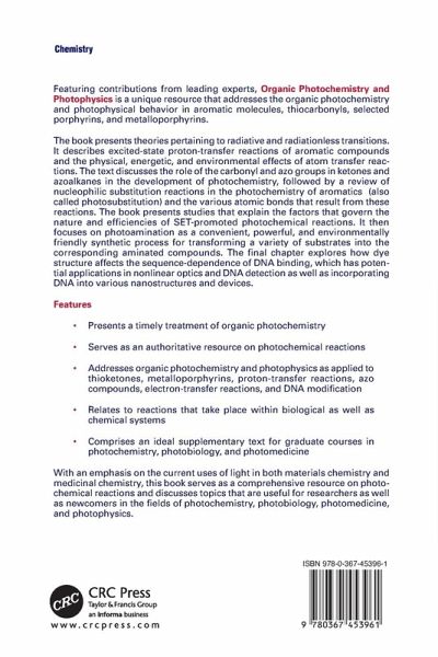 The book presents theories pertaining to radiative and radiationless transitions. It describes excited-state proton-transfer reactions of aromatic compounds and the physical, energetic, and environmental effects of atom transfer reactions. The text discusses the role of the carbonyl and azo groups in ketones and azoalkanes in the development of photochemistry, followed by a review of nucleophilic substitution reactions in the photochemistry of aromatics (also called photosubstitution) and the various atomic bonds that result from these reactions. The book presents studies that explain the factors that govern the nature and efficiencies of SET-promoted photochemical reactions. It then focuses on photoamination as a convenient, powerful, and environmentally friendly synthetic process for transforming a variety of substrates into the corresponding aminated compounds. The final chapter explores how dye structure affects the sequence-dependence of DNA binding, which has potential applications in nonlinear optics and DNA detection as well as incorporating DNA into various nanostructures and devices.