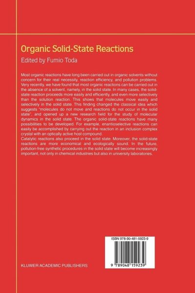 Most organic reactions have long been carried out in organic solvents without concern for their real necessity, reaction efficiency, and pollution problems. Very recently, we have found that most organic reactions can be carried out in the absence of a solvent, namely, in the solid state. In many cases, the solid-state reaction proceeds more easily and efficiently, and even more selectively than solution reaction. This shows that molecules move easily and selectively in the solid state. This finding changed the classical idea which suggests "molecules do not move and reactions do not occur in…mehr