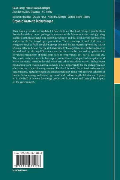 This book provides an updated knowledge on the biohydrogen production from industrial and municipal organic waste materials. Microbes are increasingly being included in the hydrogen based biofuel production and this book covers the processes and protocols for biohydrogen production. There is an urgent need of alternative energy research to fulfill the global energy demand. Biohydrogen is a promising source of sustainable and clean energy as it harnessed by biological means. Biohydrogen may be produced by utilizing different waste materials as a substrate, and by optimization of various parameters of bioreactors such as temperature, pH, partial pressure etc. The waste materials used in hydrogen production are categorized as agricultural waste, municipal waste, industrial waste, and other hazardous wastes. Biohydrogen production from wastes materials opened a new opportunity for the widespread use of everlasting renewable energy source. This book is useful for professional scientists, academicians, biotechnologist and environmentalist along with research scholars in various biotechnology and bioenergy industries by addressing the latest research going on in the field of renewal bioenergy production from waste and their global impact on the environment.