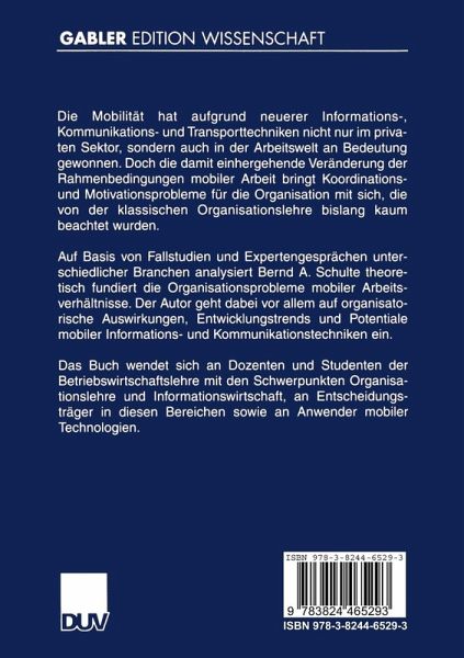 Auf Basis von Fallstudien und Expertengesprächen unterschiedlicher Branchen analysiert Bernd A. Schulte die Organisationsprobleme und die Potentiale mobiler Arbeitsverhältnisse.