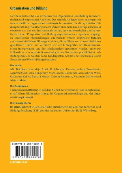 Der Band beleuchtet das Verhältnis von Organisation und Bildung in theoretischen und empirischen Analysen. Das zentrale Anliegen ist es, zu zeigen, wie unterschiedliche organisationssoziologische Ansätze für die qualitative Bildungsforschung fruchtbar gemacht werden (können). Die Beiträge entwickeln einerseits u.a. aus neo-institutionalistischer, systemtheoretischer und kulturtheoretischer Perspektive auf Bildungsorganisationen empirische Zugänge zu spezifischen Fragestellungen; andererseits werden empirische Befunde aus unterschiedlichen Bildungsbereichen, die auf Basis von unterschiedlichen qualitativen Daten und Verfahren wie der Ethnografie, der Dokumentarischen Interpretation und der Inhaltsanalyse, gewonnen wurden, unter zur Hilfenahme von organisationssoziologischen Konzepten plausibilisiert. Als Bildungsbereiche werden dabei Kindergarten, Schule und Hochschule sowie Erwachsenen/Weiterbildung fokussiert.
