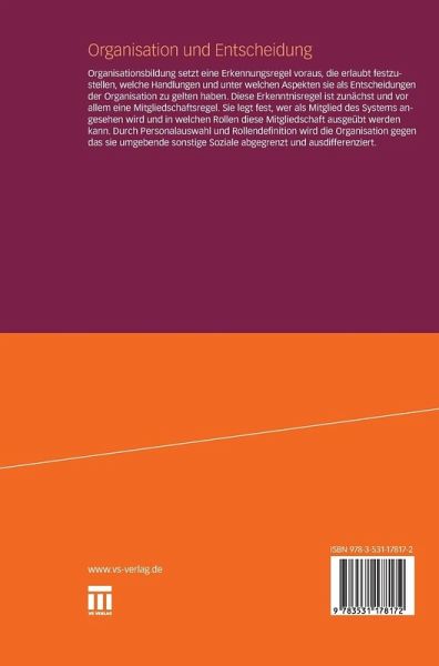 Organisationsbildung setzt eine Erkennungsregel voraus, die erlaubt festzustellen, welche Handlungen und unter welchen Aspekten sie als Entscheidungen der Organisation zu gelten haben. Diese Erkenntnisregel ist zunächst und vor allem eine Mitgliedschaftsregel. Sie legt fest, wer als Mitglied des Systems angesehen wird und in welchen Rollen diese Mitgliedschaft ausgeübt werden kann. Durch Personalauswahl und Rollendefinition wird die Organisation gegen das sie umgebende sonstige Soziale abgegrenzt und ausdifferenziert.