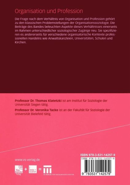 Die Frage nach dem Verhältnis von Organisation und Profession gehört zu den klassischen Problemstellungen der Organisationssoziologie. Die Beiträge des Bandes beleuchten Aspekte dieses Verhältnis einerseits im Rahmen unterschiedlicher soziologischer Zugänge neu. Sie spezifizieren es andererseits für verschiedene organisatorische Kontexte professionellen Handelns wie Anwaltskanzleien, Universitäten, Schulen, Krankenhäuser und Kirchen.