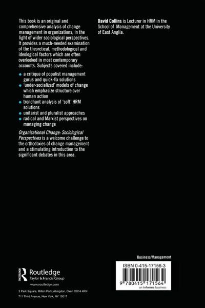 This book provides an original analysis of change management in organizations in the light of wider sociological perspectives, and critically examines the theoretical frameworks underpinning many contemporary accounts of organizational change.