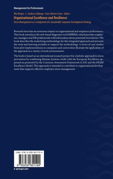 The book is based on an international research project for a holistic approach to stress prevention by combining Human Systems Audit with the European Excellence approach as promoted by the Common Assessment Framework (CAF) and the EFQM Excellence Model. This approach is intended to contribute to organizational development that supports effective employee stress management.