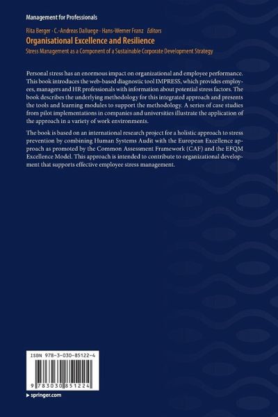 The book is based on an international research project for a holistic approach to stress prevention by combining Human Systems Audit with the European Excellence approach as promoted by the Common Assessment Framework (CAF) and the EFQM Excellence Model. This approach is intended to contribute to organizational development that supports effective employee stress management.
