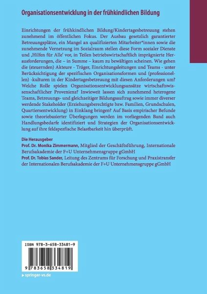 Einrichtungen der frühkindlichen Bildung/Kindertagesbetreuung stehen zunehmend im öffentlichen Fokus. Der Ausbau gesetzlich garantierter Betreuungsplätze, ein Mangel an qualifizierten Mitarbeiter_innen sowie die zunehmende Vernetzung im Sozialraum stellen diese Form sozialer Dienste und ,Hilfen für Alle' vor, in Teilen betriebswirtschaftlich imprägnierte Herausforderungen, die - in Summe - kaum zu bewältigen scheinen. Wie gehen die (steuernden) Akteure - Träger, Einrichtungsleitungen und Teams - unter Berücksichtigung der spezifischen Organisationsformen und (professionellen) -kulturen in der Kindertagesbetreuung mit diesen Anforderungen um? Welche Rolle spielen Organisationsentwicklungsansätze wirtschaftswissenschaftlicher Provenienz? Inwieweit lassen sich zunehmend heterogene Teams, Betreuungs- und gleichzeitiger Bildungsauftrag sowie immer diverser werdende Stakeholder (Erziehungsberechtigte bzw. Familien, Grundschulen, Quartiersentwicklung) in Einklang bringen?Auf Basis empirischer Befunde sowie theoriebasierter Überlegungen werden im vorliegenden Band auch Handlungsbedarfe identifiziert und Strategien der Organisationsentwicklung auf ihre feldspezfische Belastbarkeit hin überprüft.