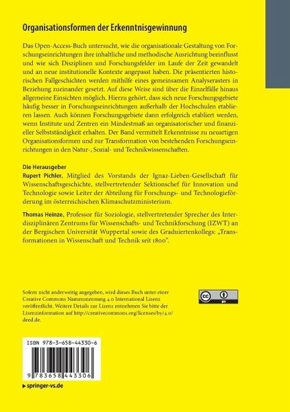 Das Open-Access-Buch untersucht, wie die organisationale Gestaltung von Forschungseinrichtungen ihre inhaltliche und methodische Ausrichtung beeinflusst und wie sich Disziplinen und Forschungsfelder im Laufe der Zeit gewandelt und an neue institutionelle Kontexte angepasst haben. Die präsentierten historischen Fallgeschichten werden mithilfe eines gemeinsamen Analyserasters in Beziehung zueinander gesetzt. Auf diese Weise sind über die Einzelfälle hinaus allgemeine Einsichten möglich. Hierzu gehört, dass sich neue Forschungsgebiete häufig besser in Forschungseinrichtungen außerhalb der Hochschulen etablieren lassen. Auch können Forschungsgebiete dann erfolgreich etabliert werden, wenn Institute und Zentren ein Mindestmaß an organisatorischer und finanzieller Selbstständigkeit erhalten. Der Band vermittelt Erkenntnisse zu neuartigen Organisationsformen und zur Transformation von bestehenden Forschungseinrichtungen in den Natur-, Sozial- und Technikwissenschaften.