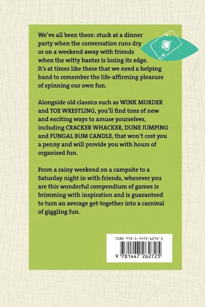 We've all been there - stuck at a dinner party when the conversation runs out or on a weekend away with friends when the witty banter is losing its edge. It's at times like these that we need a helping hand to remember the life-affirming pleasure of spinning our own fun. Alongside nostalgic classics, such as CALL MY BLUFF and CONSEQUENCES, you'll find tons of new exciting ways to amuse yourselves, including COW SNIFFING, KEBAB-SKEWER DARTS and SLEEPING-BAG SUMO, that won't cost you a penny and will provide you with hours of organised fun. Whether you're sitting in the pub on a rainy Sunday afternoon, at a friend's house on a Saturday night or away for the weekend at a festival, this wonderful compendium of games is brimming with inspiration for entertainment and is guaranteed to turn an average get-together into a carnival of giggling fun.