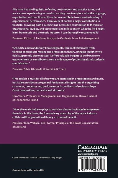 Organisational theorists have become increasingly interested in the creative industries, where practices that are commonplace are of particular interest to organisations in other sectors as they look for new ways to enhance performance. Focusing on the music industry, this book sets up a unique dialogue between leading organisational theorists and music professionals. Part I explores links between organisation theory and the creative industries literature, concentrating on practices of organising and knowledge mobilisation, followed by an in-depth discussion of key theoretical concepts by subject experts. Part II provides a diverse range of 'tales from the field', including examples from classical orchestras, folk, indie and punk. The concluding chapter examines the shared dialogue to reveal what practice in the musical field can learn from organisational theory, and vice versa. This innovative book will interest graduate students and researchers in the fields of organisation studies, music management and the creative industries.