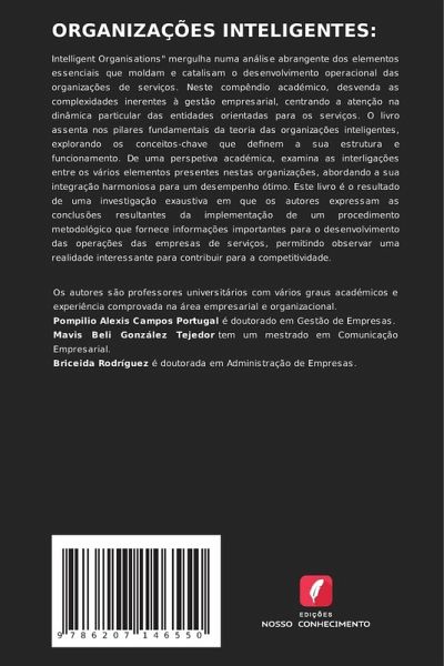Intelligent Organisations" mergulha numa análise abrangente dos elementos essenciais que moldam e catalisam o desenvolvimento operacional das organizações de serviços. Neste compêndio académico, desvenda as complexidades inerentes à gestão empresarial, centrando a atenção na dinâmica particular das entidades orientadas para os serviços. O livro assenta nos pilares fundamentais da teoria das organizações inteligentes, explorando os conceitos-chave que definem a sua estrutura e funcionamento. De uma perspetiva académica, examina as interligações entre os vários elementos presentes nestas organizações, abordando a sua integração harmoniosa para um desempenho ótimo. Este livro é o resultado de uma investigação exaustiva em que os autores expressam as conclusões resultantes da implementação de um procedimento metodológico que fornece informações importantes para o desenvolvimento das operações das empresas de serviços, permitindo observar uma realidade interessante para contribuir para a competitividade.