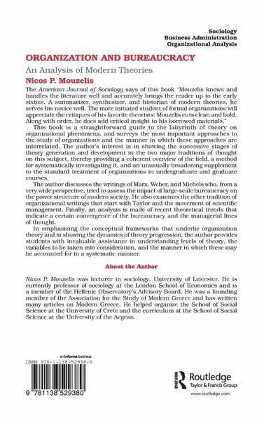 The American Journal of Sociology says of this book "Mouzelis knows and handles the literature well and accurately brings the reader up to the early sixties