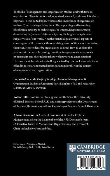 "The bulk of Management and Organization Studies deals with time as organization. Time is performed, organized, enacted, and as such is a locus of power. In this edited book, we stress the importance of organization as time. Time is an organizing force. The happening and becoming of collective activity, its technologies, its images, keep empowering, dominating or (more rarely) emancipating the fragile and ephemeral subjectivities of our world. The turn to digitality in all aspects of contemporary life has made the organizing power of time more pervasive than ever. How to describe organization as time? How to explore the relationship between becoming, duration, images, events, non-events or historicity and their relationships with power and emancipation? These are the rich and varied challenges seized by this book by a team of leading scholars interested in time and temporality in the context of management and organization"--