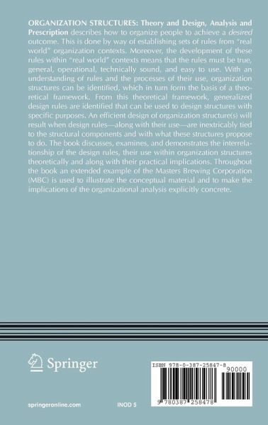 Organization Structures: Theory and Design, Analysis and Prescription describes how to organize people to achieve a desired outcome. This is accomplished by establishing sets of rules from "real world" organization contexts. Moreover, the development of these rules within "real world" contexts means that the rules must be true, general, operational, technically sound, and easy to use. With an understanding of rules and the processes of their use, organization structures can be identified, which in turn form the basis of a theoretical framework. This book discusses, examines, and demonstrates the interrelationship of the design rules, their theoretical use within these organization structures, along with their practical implications. Throughout the book, an extended example of the Masters Brewing Corporation (MBC) is used to illustrate the conceptual material and to make the implications of the organizational analysis explicitly concrete.