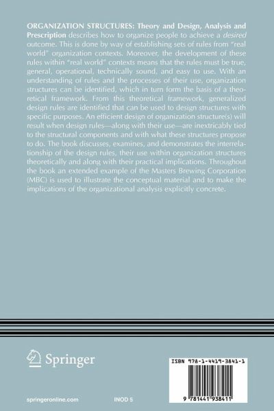 Organization Structures: Theory and Design, Analysis and Prescription describes how to organize people to achieve a desired outcome. This is accomplished by establishing sets of rules from "real world" organization contexts. Moreover, the development of these rules within "real world" contexts means that the rules must be true, general, operational, technically sound, and easy to use. With an understanding of rules and the processes of their use, organization structures can be identified, which in turn form the basis of a theoretical framework. This book discusses, examines, and demonstrates the interrelationship of the design rules, their theoretical use within these organization structures, along with their practical implications. Throughout the book, an extended example of the Masters Brewing Corporation (MBC) is used to illustrate the conceptual material and to make the implications of the organizational analysis explicitly concrete.