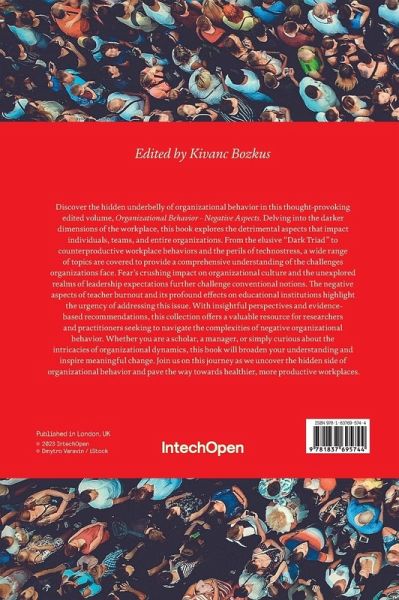 Discover the hidden underbelly of organizational behavior in this thought-provoking edited volume, Organizational Behavior - Negative Aspects. Delving into the darker dimensions of the workplace, this book explores the detrimental aspects that impact individuals, teams, and entire organizations. From the elusive "Dark Triad" to counterproductive workplace behaviors and the perils of technostress, a wide range of topics are covered to provide a comprehensive understanding of the challenges organizations face. Fear's crushing impact on organizational culture and the unexplored realms of leadership expectations further challenge conventional notions. The negative aspects of teacher burnout and its profound effects on educational institutions highlight the urgency of addressing this issue. With insightful perspectives and evidence-based recommendations, this collection offers a valuable resource for researchers and practitioners seeking to navigate the complexities of negative organizational behavior. Whether you are a scholar, a manager, or simply curious about the intricacies of organizational dynamics, this book will broaden your understanding and inspire meaningful change. Join us on this journey as we uncover the hidden side of organizational behavior and pave the way towards healthier, more productive workplaces.