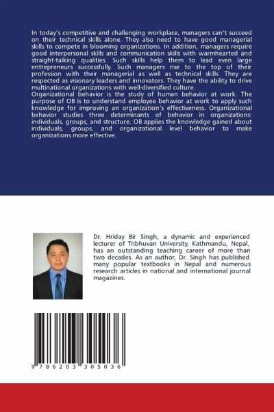 In today's competitive and challenging workplace, managers can't succeed on their technical skills alone. They also need to have good managerial skills to compete in blooming organizations. In addition, managers require good interpersonal skills and communication skills with warmhearted and straight-talking qualities. Such skills help them to lead even large entrepreneurs successfully. Such managers rise to the top of their profession with their managerial as well as technical skills. They are respected as visionary leaders and innovators. They have the ability to drive multinational organizations with well-diversified culture.Organizational behavior is the study of human behavior at work. The purpose of OB is to understand employee behavior at work to apply such knowledge for improving an organization's effectiveness. Organizational behavior studies three determinants of behavior in organizations: individuals, groups, and structure. OB applies the knowledge gained about individuals, groups, and organizational level behavior to make organizations more effective.