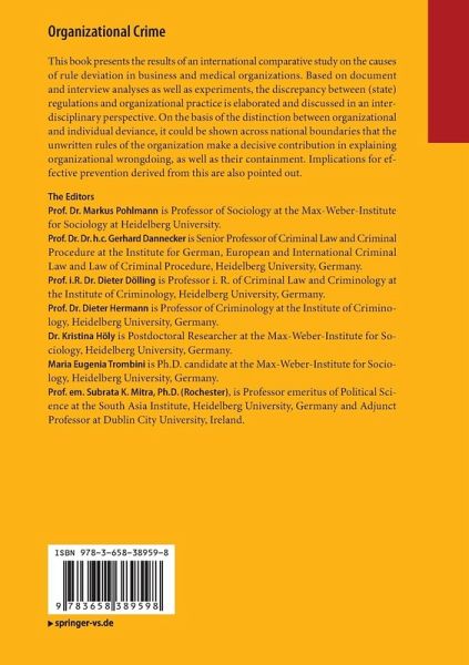 This book presents the results of an international comparative study on the causes of rule deviation in business and medical organizations. Based on document and interview analyses as well as experiments, the discrepancy between (state) regulations and organizational practice is elaborated and discussed in an interdisciplinary perspective. On the basis of the distinction between organizational and individual deviance, it could be shown across national boundaries that the unwritten rules of the organization make a decisive contribution in explaining organizational wrongdoing, as well as their containment. Implications for effective prevention derived from this are also pointed out.