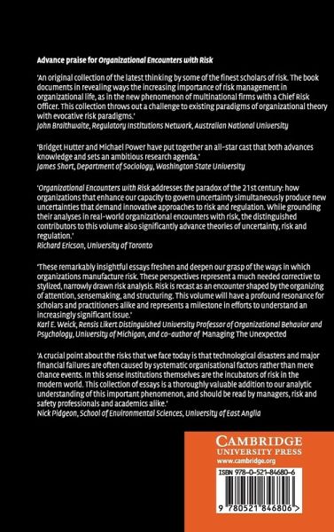Organizational encounters with risk range from errors and anomalies to outright disasters. In a world of increasing interdependence and technological sophistication, the problem of understanding and managing such risks has grown ever more complex. Organizations and their participants must often reform and reorganise themselves in response to major events and crises, dealing with the paradox of managing the potentially unmanageable. Organizational responses are influenced by many factors, such as the representational capacity of information systems and concerns with legal liability. In this collection, leading experts on risk management from a variety of disciplines address these complex features of organizational encounters with risk. They raise critical questions about how risk can be understood and conceived by organizations, and whether it can be 'managed' in any realistic sense at all. This book is an important reminder that the organisational management of risk involves much more than the cool application of statistical method.