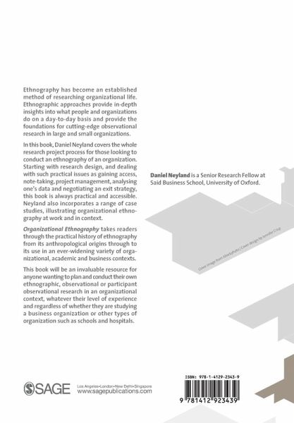 Taking readers through the practical history of ethnography from its anthropological origins through to its use in a ever-widening variety of organizational, academic and business contexts, this book covers the whole research project process, starting with research design, and dealing with such practical issues as gaining access, note-taking, project management, analysing one's data and negotiating an exit strategy. It is highly practical and incorporates a range of case studies, illustrating organisational ethnography at work.