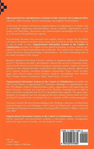 Organizational Information Systems in the Context of Globalization exemplifies the role of social theory in approaching ICT utilization challenges in a globalization context. The debates raised on implementation, policy, organizations and organizing, and social dynamics, increase our awareness of the diversity of perspectives we need to delve into when framing the role of ICTs in the globalization agenda. The equal representation of managerial and non-managerial decision making contexts alerts us to the fact that ICTs should not be considered only as a corporate wealth creation prerogative.…mehr