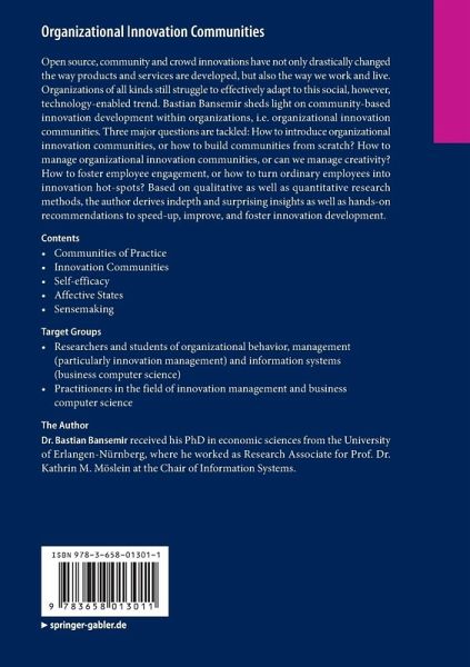 Open source, community and crowd innovations have not only drastically changed the way products and services are developed, but also the way we work and live. Yet, organizations of all kinds, may they be small or large, globalized or local, etc., still struggle to effectively adapt to this social, however, technology-enabled trend. This work sheds light on community-based innovation development within organizations, i.e. organizational innovation communities. Three major questions are tackled: How to introduce organizational innovation communities, or how to build communities from scratch? How to manage organizational innovation communities, or can we manage creativity? How to foster employee engagement, or how to turn ordinary employees into innovation hot-spots? Based on qualitative as well as quantitative research methods, the author derives in-depth and surprising insights as well as hands-on recommendations to speed-up, improve, and foster innovation development.