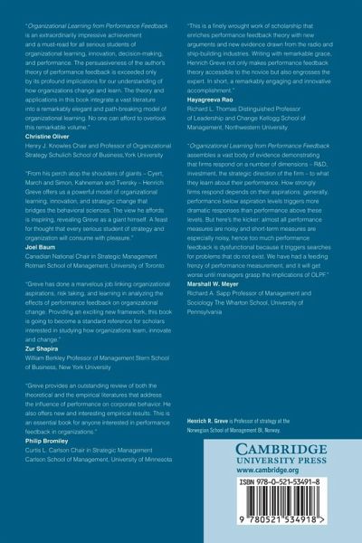 Revisiting Cyert and March's classic 1963 'Behavioral Theory of the Firm', Henrich Greve offers an intriguing analysis of how firms evolve in response to feedback about their own performance. Based on ideas from organizational theory, social psychology, and economics, he explains how managers set goals, evaluate performance, and determine strategic changes. Drawing on a range of studies, including the author's own analysis of the Japanese shipbuilding industry, he reports on how theory fits evidence on organizational change of risk-taking, research and development expenses, innovativeness, investment in assets, and in market strategy. The findings suggest that high-performing organizations quickly reduce their rates of change, but low-performing organizations only slowly increase those rates. Analysis of performance feedback is an important direction for research and this book provides valuable insights in how organizational learning interacts with other influences on organizational behaviour such as competitive rivalry and institutional influences.