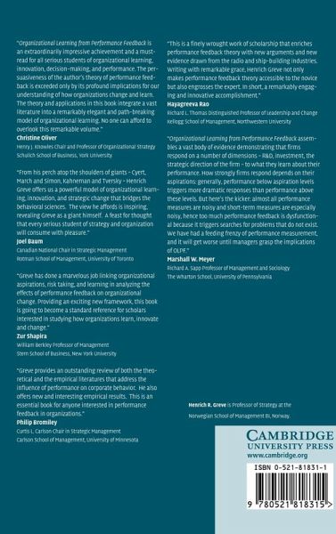Revisiting Cyert and March's classic 1963 'Behavioral Theory of the Firm', Henrich Greve offers an intriguing analysis of how firms evolve in response to feedback about their own performance. Based on ideas from organizational theory, social psychology, and economics, he explains how managers set goals, evaluate performance, and determine strategic changes. Drawing on a range of studies, including the author's own analysis of the Japanese shipbuilding industry, he reports on how theory fits evidence on organizational change of risk-taking, research and development expenses, innovativeness, investment in assets, and in market strategy. The findings suggest that high-performing organizations quickly reduce their rates of change, but low-performing organizations only slowly increase those rates. Analysis of performance feedback is an important direction for research and this book provides valuable insights in how organizational learning interacts with other influences on organizational behaviour such as competitive rivalry and institutional influences.