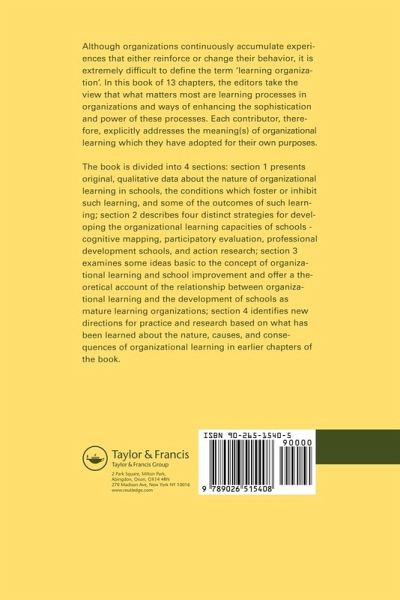 This volume presents the view that what matters most are learning processes in organizations and ways of enhancing the sophistication and power of these processes. Each contributor, therefore, explicitly addresses the meaning(s) of organizational learning which they have adopted themselves.