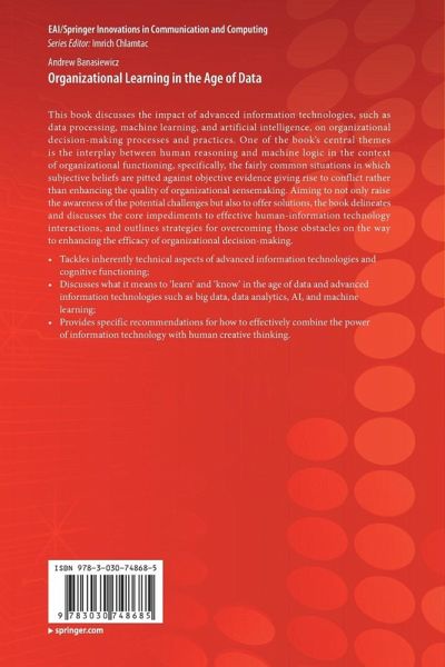 This book discusses the impact of advanced information technologies, such as data processing, machine learning, and artificial intelligence, on organizational decision-making processes and practices. One of the book's central themes is the interplay between human reasoning and machine logic in the context of organizational functioning, specifically, the fairly common situations in which subjective beliefs are pitted against objective evidence giving rise to conflict rather than enhancing the quality of organizational sensemaking. Aiming to not only raise the awareness of the potential…mehr