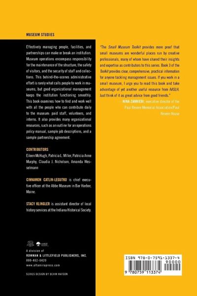 Effectively managing people, facilities, and partnerships can make or break an institution. In this book, we look at managing those paid or unpaid staff who contribute daily to the museum, provide tools for operations, address maintenance and safety issues, and discuss collaboration with outside organizations.