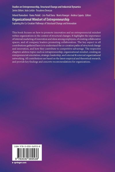 This book focuses on how to promote innovation and an entrepreneurial mindset within organizations in the context of structural changes. It highlights the importance of internal marketing of innovation and ideas among employees, of creating collaborative spaces, and of company leaders promoting collaboration. The key aspect in all contributions gathered here is to understand the co-creation paths of structural change and innovation, and how they contribute to competitive advantage. The respective chapters address topics such as intrapreneurship, organizational mindset, creating an entrepreneurial orientation, strategic leadership, and internal & external organizational networking. All contributions are based on the latest empirical and theoretical research, and provide key findings and concrete recommendations for organizations.